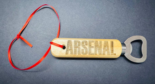 ARSENAL WOODEN BOTTLE OPENER x 1. Charity Donation from Sale.