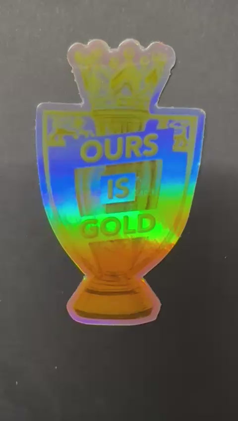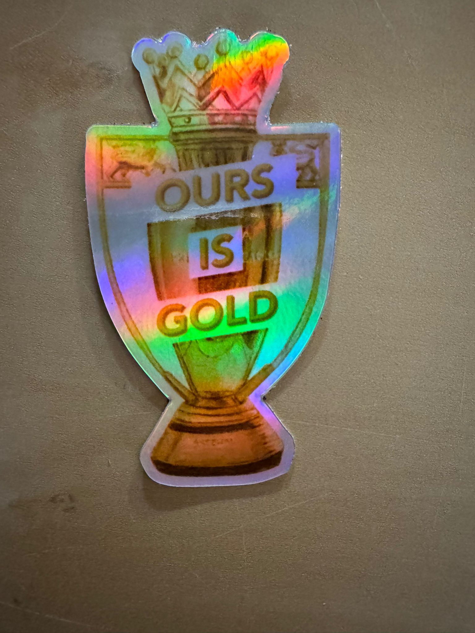 Original to Ruth Beck Art; Ours Is Gold design on a custom-made vinyl Holographic effect Sticker 7.6cm x 4.2cm.