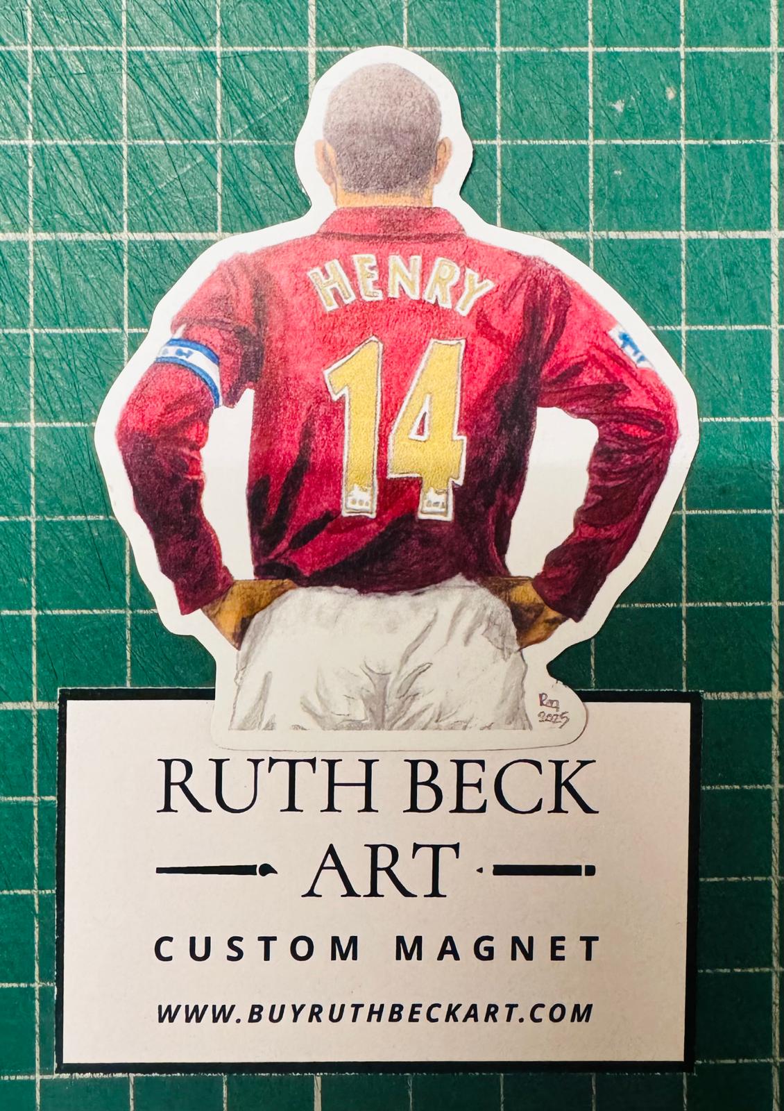 Original to Ruth Beck Art; Thierry Henry 14 watercolour painting on a custom-made Magnet 65mm x 75mm
